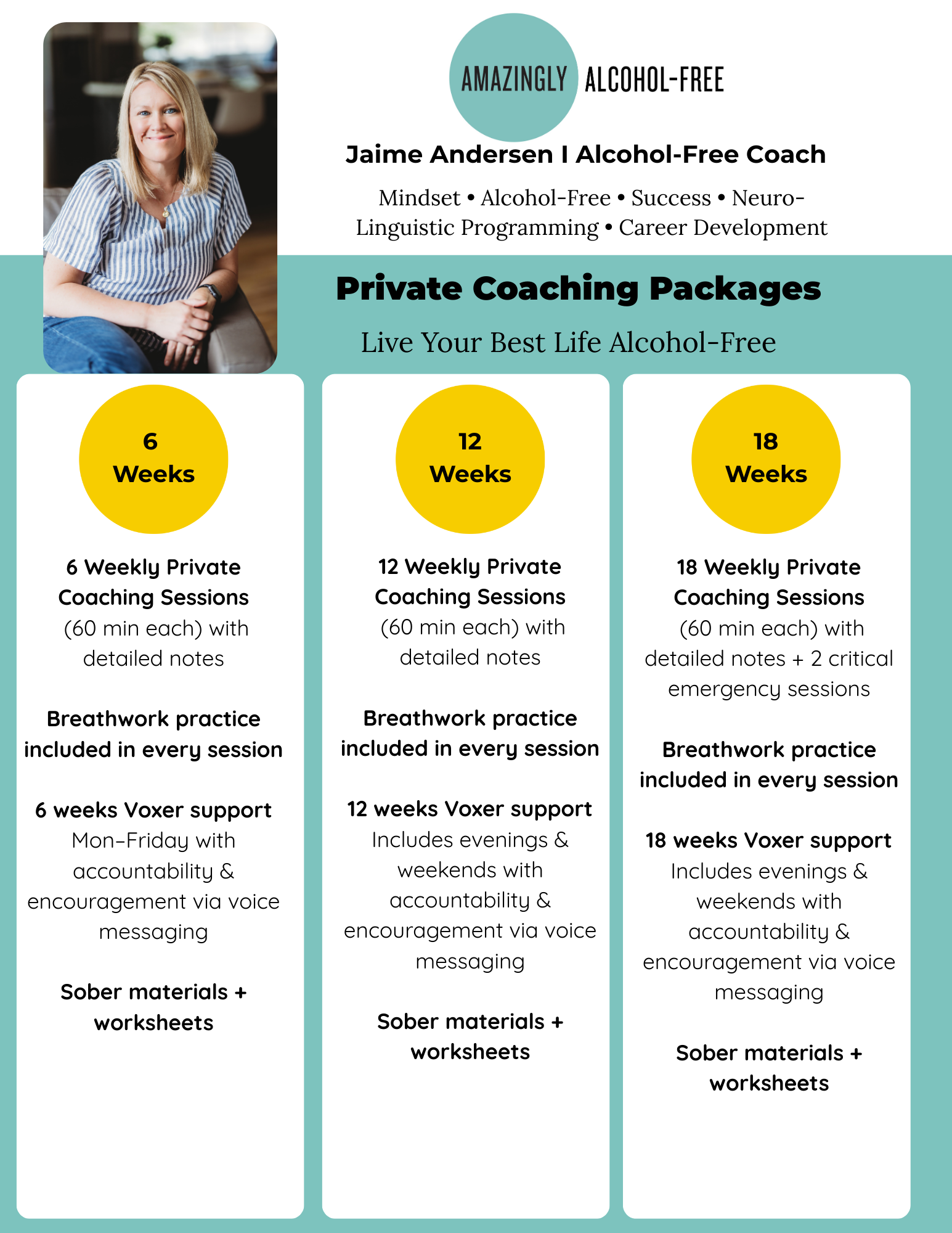 Ready to feel confident, clear, and proud on your alcohol-free journey? With private coaching, you don’t have to figure it out alone. You’ll get personalized support, strategies that actually work, and the accountability to follow through.
